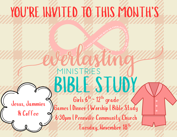 Everlasting Ministries hosts a Bible Study once a month on a Tuesday that is open to any young lady in 6th – 12th grade.